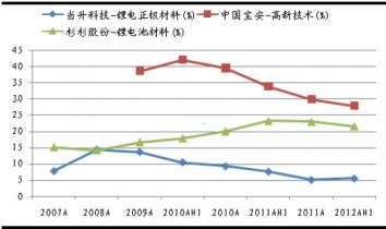 2012年,我國鋰電池出貨量41.85億只,同比大幅增長42.26%。而季度產(chǎn)量及增速顯示:11年第三季度為增速低點,12年各季度增速均維持在33%以上的水平。我們認為:13年我國鋰電池總體增速將維持較高水平。