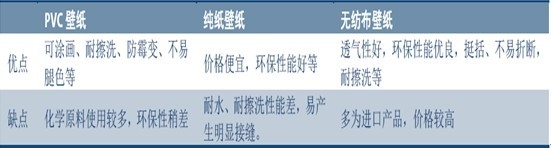 無紡布壁紙是由天然植物纖維或合成纖維經(jīng)過無紡成型的一種高檔壁紙,與目前應(yīng)用最廣泛的普通壁紙相比,具有透氣性好、易張貼等優(yōu)勢(shì),契合消費(fèi)者對(duì)環(huán)保要求日益提升的趨勢(shì),是國際上最流行的新型綠色環(huán)保材質(zhì)。