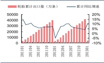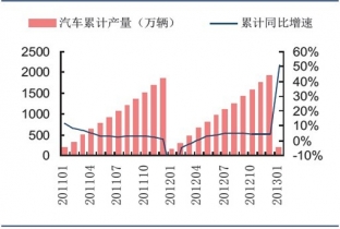 本文導(dǎo)讀:在國(guó)內(nèi)汽車需求和輪胎出口雙重拉動(dòng)下,輪胎需求有望復(fù)蘇,從而將拉動(dòng)合成橡膠及丁二烯需求好轉(zhuǎn)。國(guó)內(nèi)汽車產(chǎn)量方而,2013年1月,汽車銷量單月同比增長(zhǎng)51.2%;據(jù)預(yù)測(cè),2013年狹義乘用車銷量增速有望超預(yù)期接近15%。