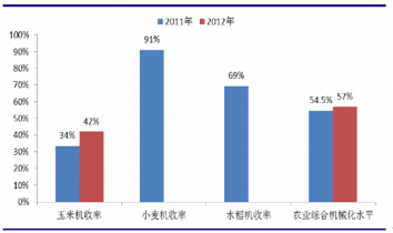 2011-2012年玉米、小麥、水稻機(jī)收率對(duì)比分析