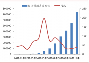 2000-2011年中國經(jīng)濟型酒店客房數(shù)增長情況